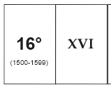 - Con una série de carte (n° 21+21) per essere posizionate negli spazi indicati, mostrando da un lato il secolo (per esempio, 16°) e dall’altro il numero ronano corrispondente (ad esempio, XVI).